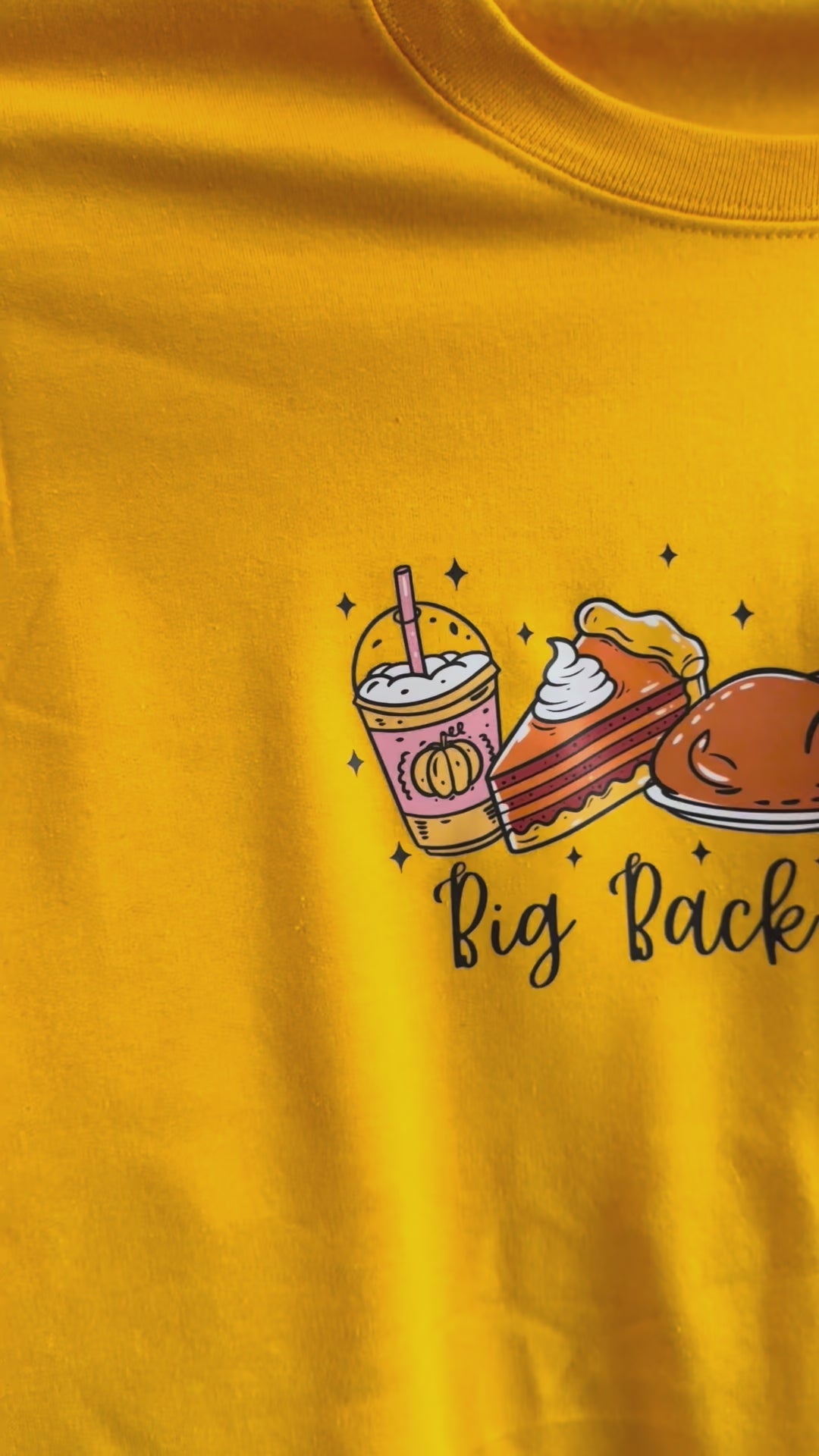 Bring cozy vibes and humor to your Thanksgiving look with our Big Back Energy Sweatshirt! 🍂 Featuring a fun fall design with pumpkin pie, turkey, and sweet treats, this comfy sweatshirt is perfect for family gatherings, Friendsgiving, or casual fall outfits. Made with soft, high quality fabric, it’s both stylish and cozy for chilly autumn days.