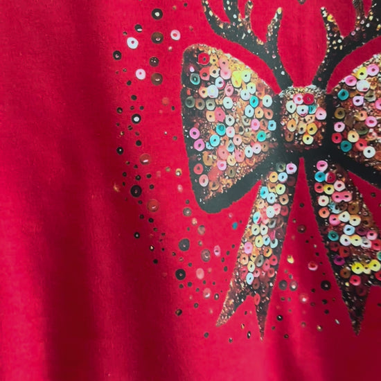 Shine bright this holiday season with our P Sequin Bow Sweatshirt! πβ¨ Featuring a sparkly sequin bow with festive reindeer antlers, this cozy sweatshirt is the perfect mix of glam and holiday cheer. Designed in soft fleece for warmth and comfort, itβs ideal for Christmas parties, family gatherings, or casual winter wear.