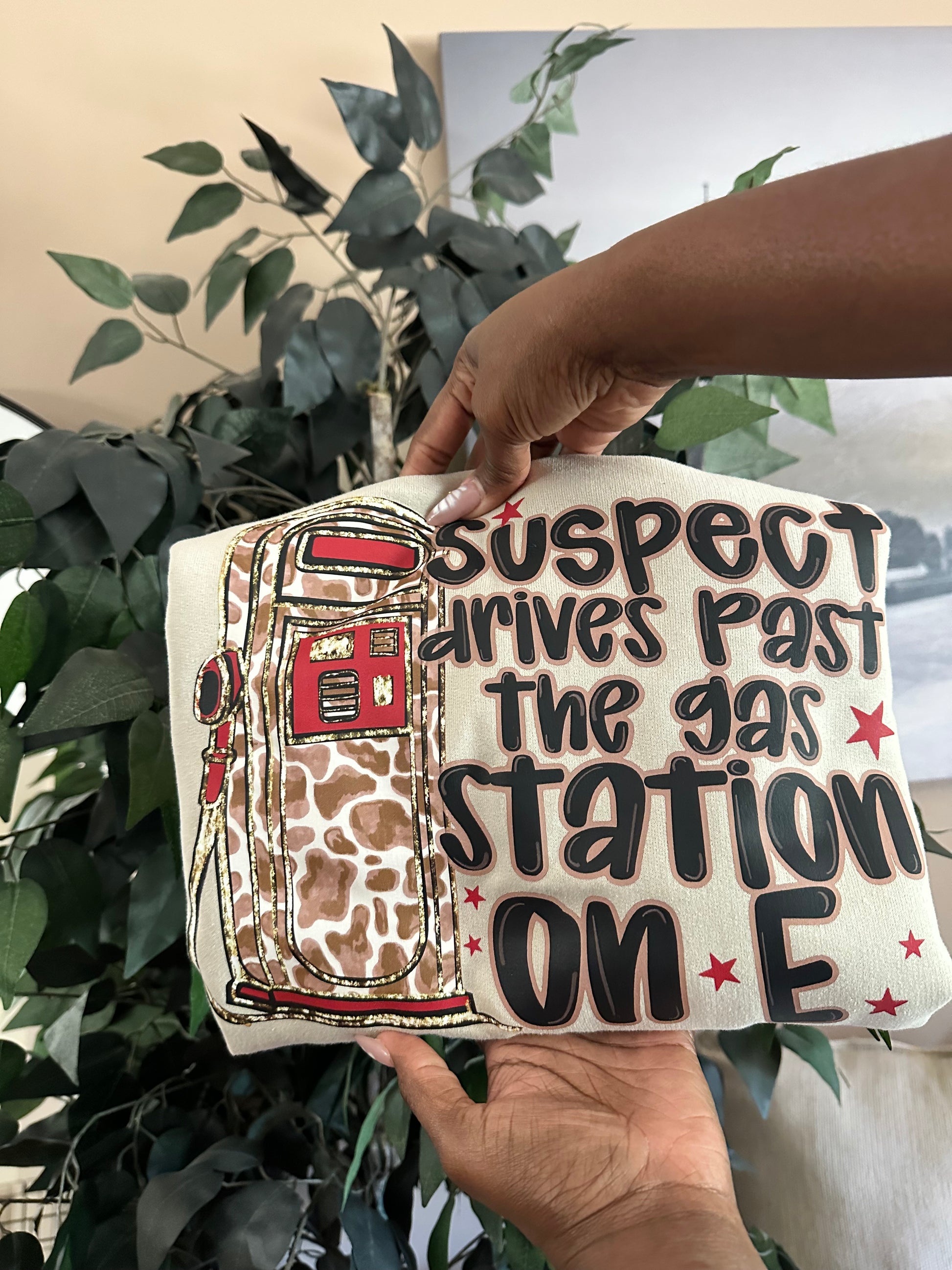 Bring the laughs everywhere you go with this “Suspect Drives Past the Gas Station on E” sweatshirt! This cozy unisex crewneck is perfect for anyone who always waits until the last minute to fill up or knows someone who does! Featuring a fun, retro gas pump with a trendy cheetah print, this sweatshirt makes the perfect gift for friends, coworkers, spouses, or that one family member who’s ALWAYS riding on empty.